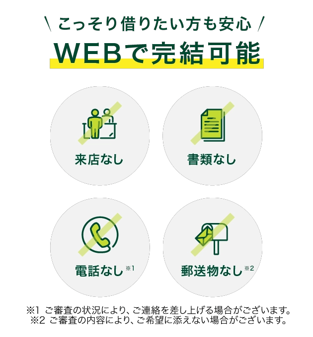 - 電話なし・郵便なしで安心の借入